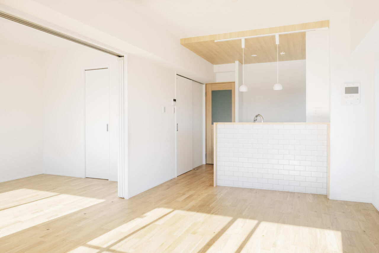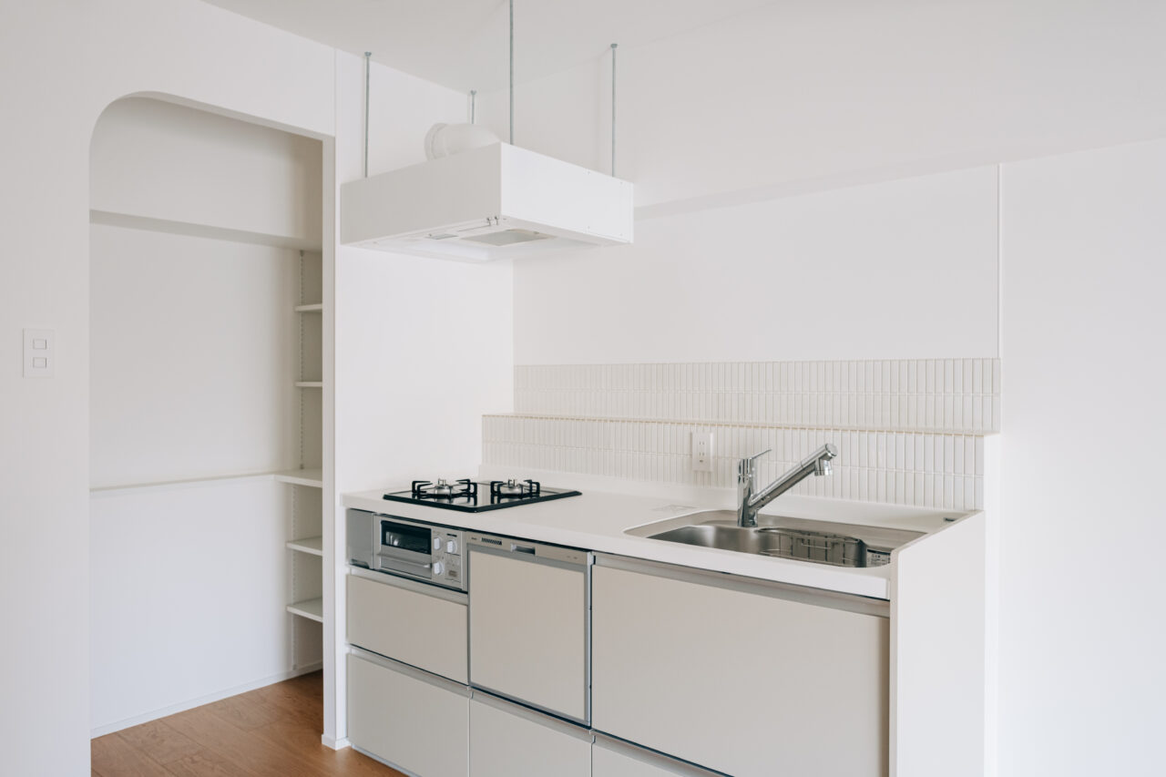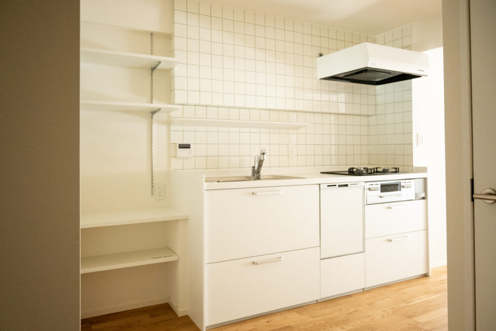 #ホワイトタイルと木目デザイン
