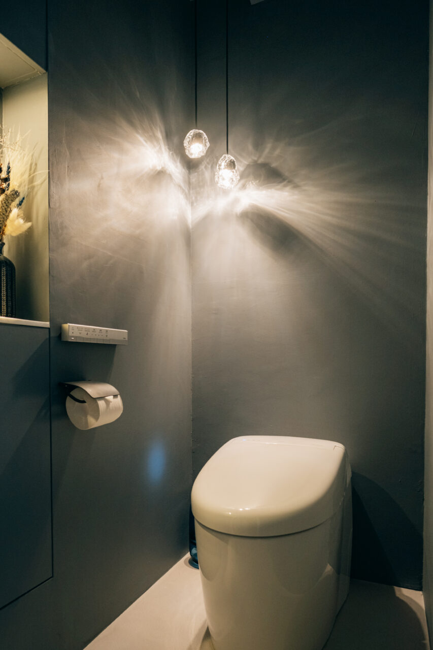 洗面スペース・トイレスペースは、リビングと同じような雰囲気に。