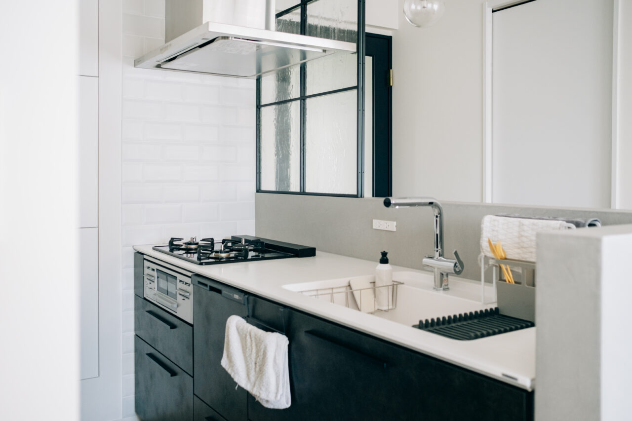 ブラックの締まった色と風合い、そしてクリスタルカウンターの上質な雰囲気。